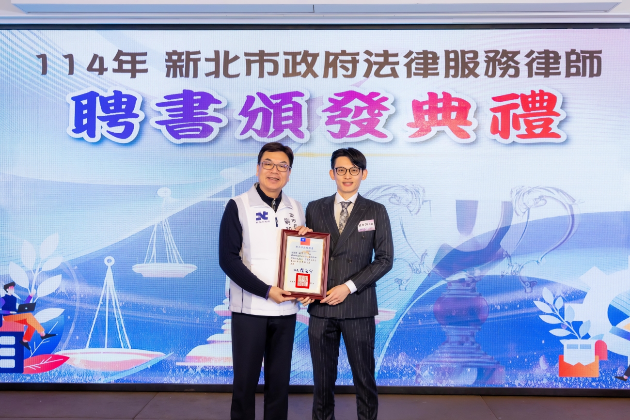 新北市政府聘書頒發典禮,由新北市副市長劉和然親自頒發聘書。