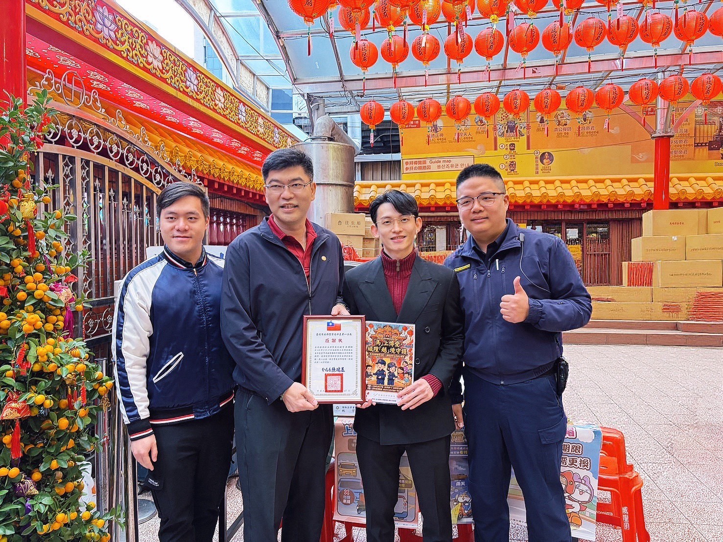 姚宇洋律師於大年初一受邀至臺灣省城隍廟提供民眾法律諮詢,由臺北市政府警察局中正第一分局分局長陳瑞基親自頒發感謝狀。